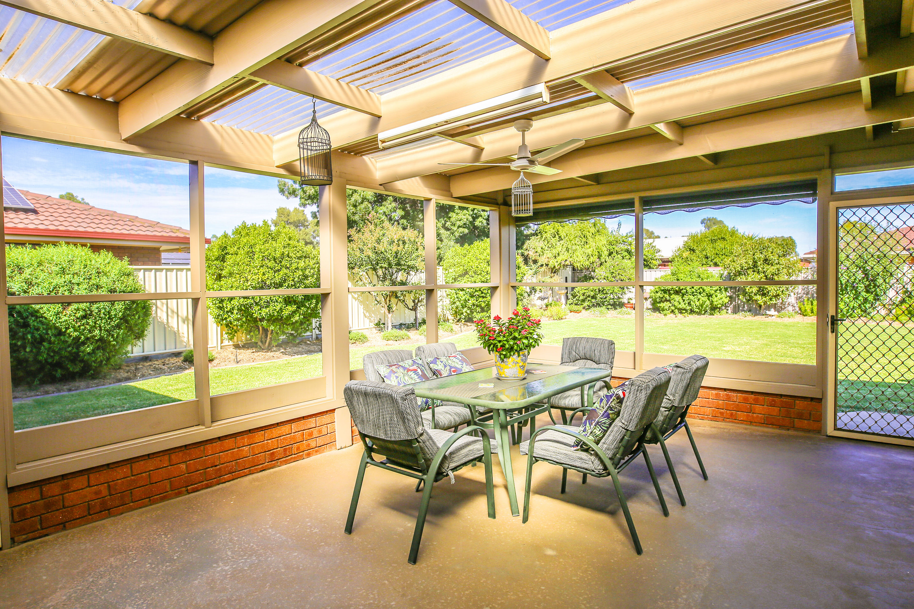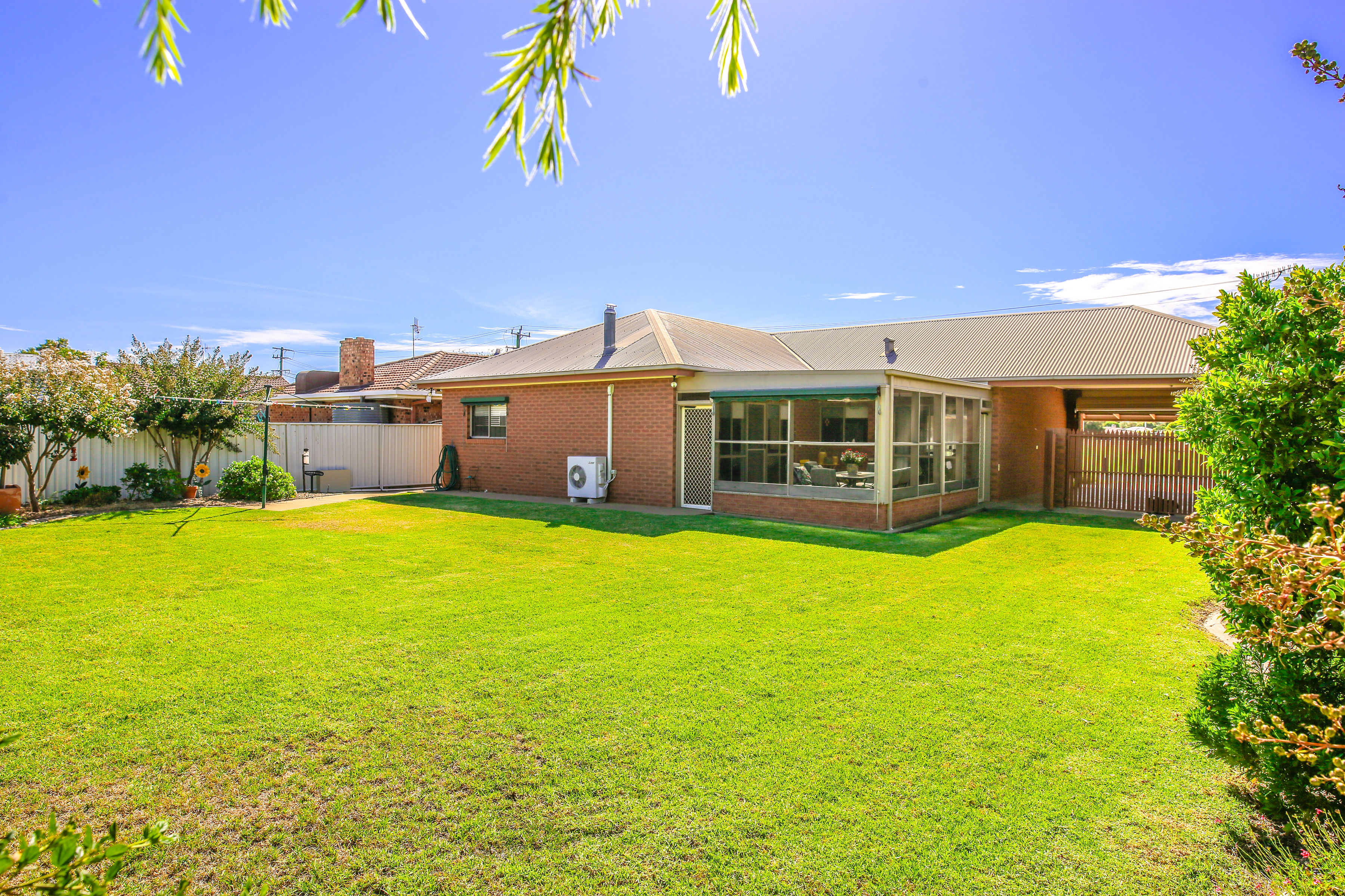 For an older couple, it's perfect - safe and secure double carport with auto rollerdoor, low-maintenance lawns and gardens serviced by an automatic sprinkler system, gauzed-in and private entertaining area, and plenty of room when family come to stay. Equally, a growing family will love the parkland, proximity to Deniliquin South School and High School, and the two bathrooms and two living areas. The front entrance of the home opens to an inviting tiled entry which leads to the light-filled formal lounge and dining room. To the right of the entrance area is the master bedroom featuring walk-in-robe and ensuite. The centrally located kitchen boasts high-quality hardwood cabinetry, dishwasher and dual sink, and overlooks the family room with cosy wood heater and split system AC, while there is ducted evaporative cooling throughout. The two guest / kids' bedrooms each have four-door BIRs, and the family bathroom has a separate bath and shower. There is a spacious laundry at the rear of the home with easy external access to the clothesline and garden shed.