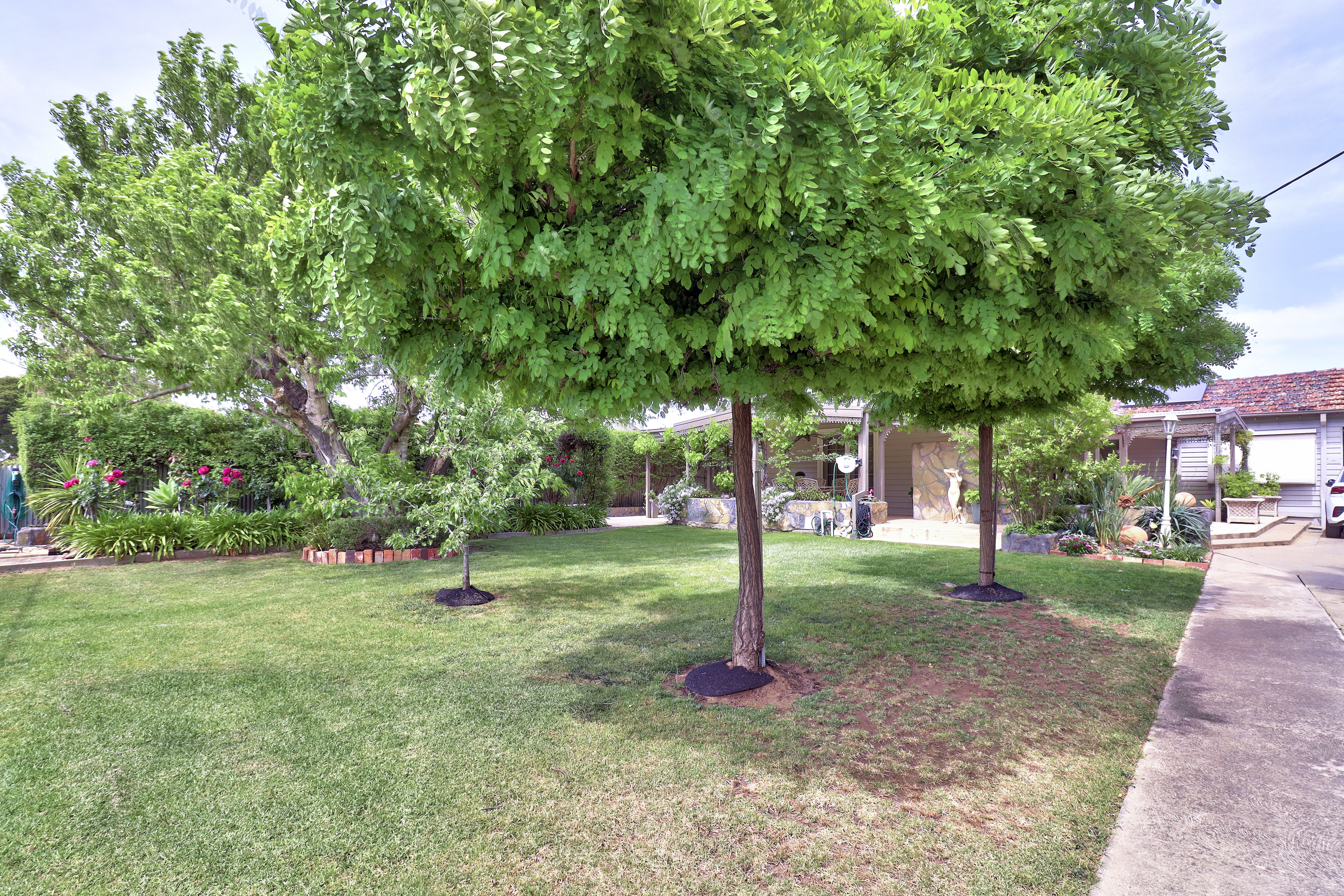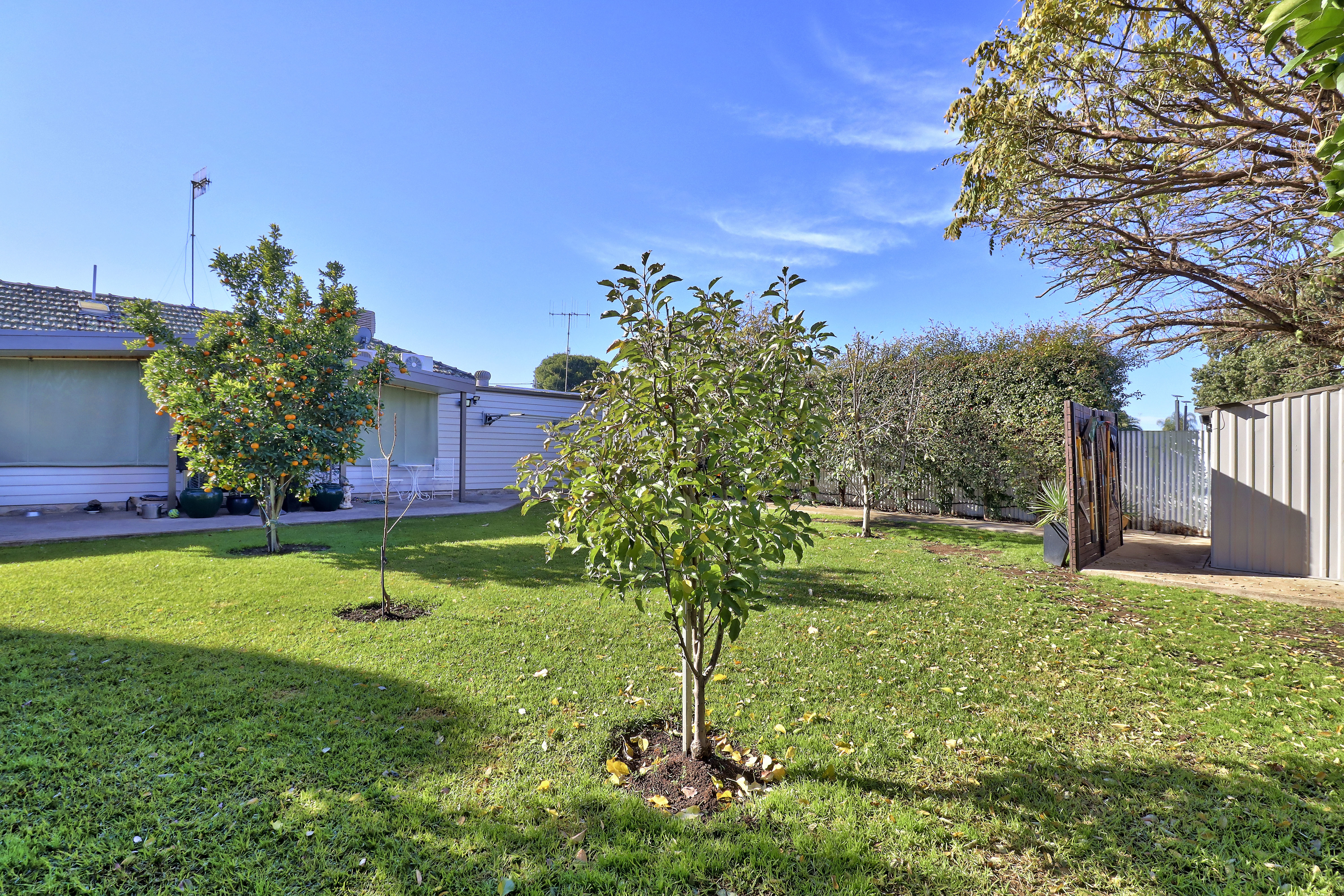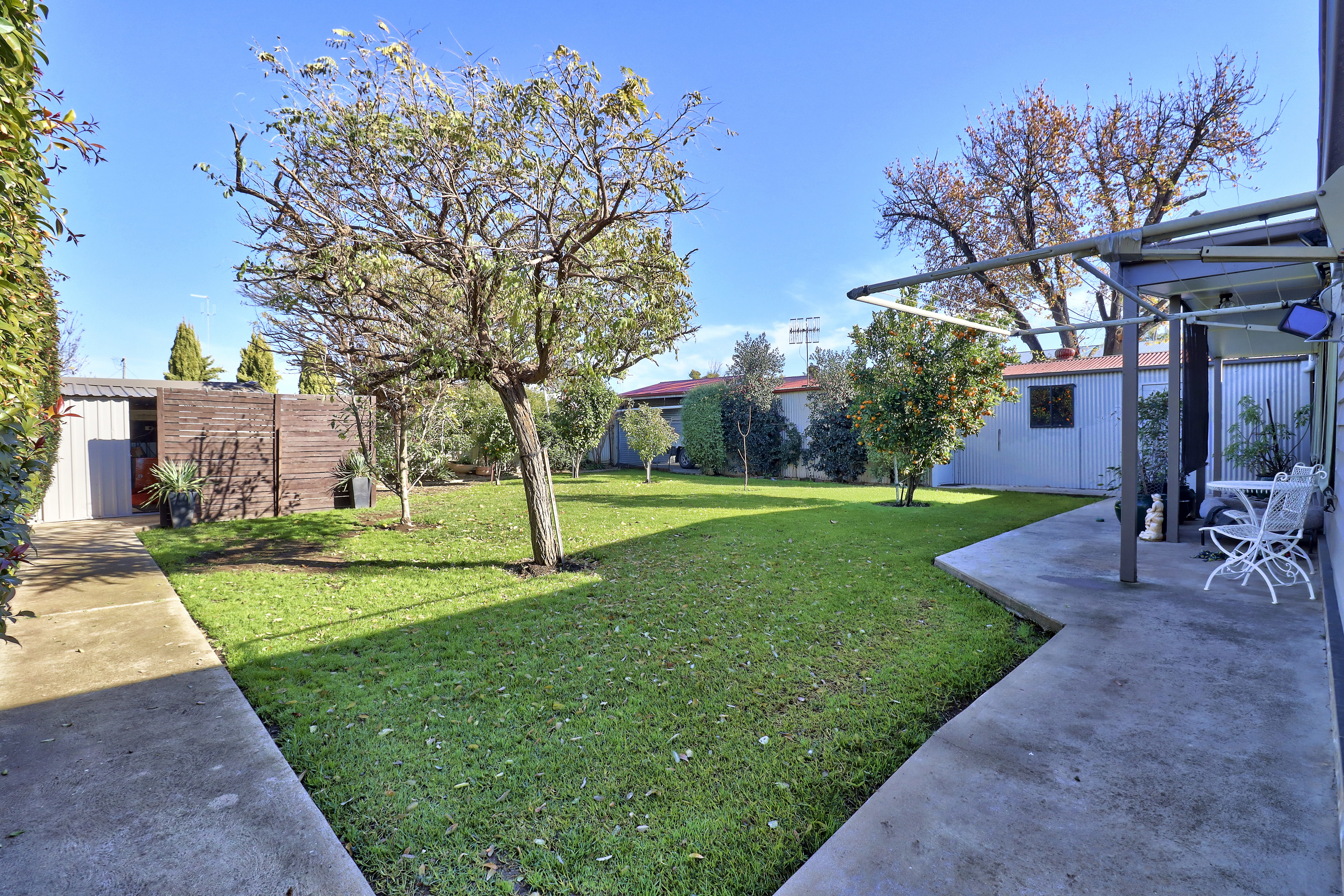 Presentation Perfect This impeccably maintained three-bedroom, three-bathroom residence is a true gem, offering luxurious living in the heart of Deniliquin. With a perfect blend of modern amenities and thoughtful design, this property promises comfort, convenience, and style for the discerning homeowner. The immaculately kept grounds have been designed with low maintenance in mind, featuring an automatic sprinkler system throughout and well-established trees and plants that offer privacy. The convenient entertaining area at the front capitalises on both the morning and afternoon sun, perfect all year-round memories to be made. The secure front and back yards include automatic gate access from Henry Street and automatic roller door access from the rear laneway to the carport. The property also boasts every tradie's dream shedding, with tandem sheds equipped with power and full bathroom facilities. With rising costs, the discerning buyer will love the added bonus of installed solar panels, along with the rarity of a residential property with its own bore. The interior of the property is equally impressive, featuring three bedrooms (two with walk-in robes), an office, an ensuite, and a family bathroom with a spa bath, along with two living areas. The home has been freshly painted inside and out, with property maintenance kept to an exceptionally high standard throughout the years.