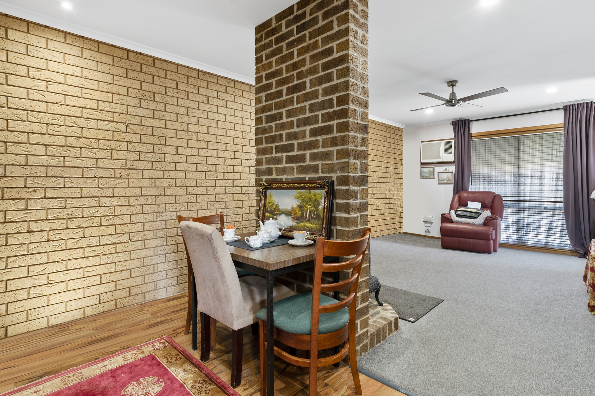 Step inside to find the first comfortable size bedroom with wall to wall wardrobe, then into the open living area of the lounge separated with only a small exposed brick wall, with wood fire to the dining area. A functional kitchen that caters to your daily needs with ease, with plenty of cupboards, stove and oven.